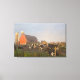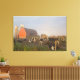 Holstein dairy cows outside a barn at sunrise canvas print