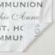 Charming and elegant design featuring handwriting script step and repeat, faux silver cross. Use Personalize tool to add your info. For matching items, please, visit my Holy Communion Collection.