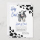 Plain white envelopes are included with paper invitations and will come to fit the invitation size you select. If you don’t need the envelopes, you may choose to not receive them by selecting the dropdown below "Envelopes" and choosing "None." If you’d like to have a design on your envelopes, you can browse all of these available envelopes to find the design that complements your Holy Cow Black And Blue Cute Cow Birthday Party Invitation.