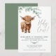Holy Cow Boho Greenery Highland Cow 1st Birthday Invitation