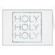 Three repetitions of the word "Holy" are arranged in a vertical stack, enclosed within a simple square border. Each letter features a subtle, textured blue tone on a white background, giving the text a serene and reflective feel.