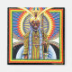 In this acrylic painting by Chris Dyer, a holy man stands over the world with his staff in hand.