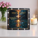 This incredibly moving and symbolic design powerfully conveys the theme of Flame and Water—the spiritual cleansing and empowering baptism of the Holy Spirit. The artwork, featured on a square wall clock, displays a vibrant cross made entirely of fire ascending dynamically from dark, deep, rippling water. The bright cross is strongly reflected in the liquid below, emphasizing the divine presence and reality of the message from Matthew 3:11: "He will baptize you with the Holy Spirit and fire." The powerful visual contrast between the radiant fire and the cool, blue water symbolizes purification and the transformative power of faith, making it clear this is a design about the Holy Spirit. The highest quality print and artwork used on the surface is so exceptional it creates a stunningly realistic tactile illusion; you could easily mistake the textures for genuine embossed metal or heavy, worn leather. This piece is a spectacular dedication to faith and the power of the Holy Spirit. this impressive, high-quality piece is a perfect gift for any devoted person, honoring their spiritual journey.