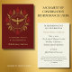Elegant Catholic Confirmation keepsake featuring a radiant gold Dove symbolizing the Holy Spirit, encircled by stylized crimson tongues of fire and ornate acanthus flourishes. A reverent design to commemorate the sacred outpouring of the Gifts of the Holy Spirit. Includes personalized name, date, parish, bishop, and sponsor. A treasured memento for those sealed with the Spirit of Truth.