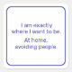 This sticker is a vibe. Use it to declare your preference for peaceful solitude. Dark blue text says, "I am exactly where I want to be. At home, avoiding people." Other available colors include hot pink, dark red, black, and dark green.