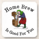 A fun design for home beer brewers with a colorful medieval tapster pouring himself a pitcher of ale from his two kegs framed by the text "Home Brew Is Good For Your".
