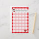 If you love retro you'll love our kitchen stationery featuring a red check tablecloth background with a cute 50's gal in a chef's hat, oven mitt, spatula and fork. Customizable heading. Perfect for gifts for your favorite chef, mom, grandmother or new bride. Make a gift set with our coordinated menu planner, recipe keeper, apron, recipe cards, magnets and cookbook binder.
