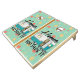 Natural Wood Cornhole Set, Royal Blue and Yellow bags