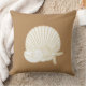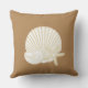 Beach theme home decor throw pillows in a beautiful graphic design including a scallop seashell, nautilus shell, and starfish with style. Designed for decorate any room with a touch of nature with a tropical flair.