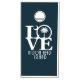 Natural Wood Cornhole Set, Royal Blue and Yellow bags