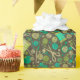 Tissue paper featuring lovely pattern, sewing supplies - scissors, buttons, spools of thread, needles. This design, elaborated from handmade paper collage, makes a great gifts for crafters and sewers. Bottle, olive and aquamarine green.