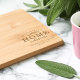 This bamboo cutting board, with its handy-dandy handle cutout, is more than just a pretty face. It's laser-engraved with your custom text or design, making it the ultimate gift for any occasion—because who doesn’t love a touch of personalization? Prepped and primed with oil, this board is ready for action! Just give it some TLC by hand washing and a little food-grade oil now and then to keep it looking fresh and fabulous.
