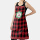 Great color and even though I ordered the kid size, it covers well enough to use during the holidays. I am not a big woman and prefer a shorter apron. I stand 5"6" and the length of the garment goes to mid-thigh. The tie straps fit well at my waist and even though there is no neck strap adjustment, the opening is plenty big enough. I am happy with the size and fit. I am sharing my apron with my 10 year old grandson, too! The color is vibrant and looks good, as shown on the website. The stitching looks strong and reinforced. Photographed is front side and back side of the apron, reinforced straps and coloring. My phone camera may not be the best at showing the details.