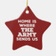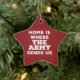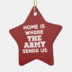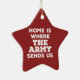 Decorate your Christmas tree with this patriotic star ornament. The message "Home is Where the Army Sends Us" is featured on the front in a classic style. The back has a matching red color and customizable text, i.e. name of the post or posts you have been stationed at. Keep the matching red color and post name, delete the post name, or upload your own image on the back to create a custom keepsake. Makes a great gift for military families!