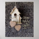 "Home is Where the Heart Is" is the message on this unique poster. A designed photo of a wooden birdhouse and two hearts with a dark cork background. Download, print and frame for a great last minute gift!