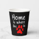 A wordplay with the quote "Home is where the heart is", this black paper cup has the words "Home is where the [paw print picture] is", with the paw print picture in red, representing the "heart". The perfect gift for pet lovers.