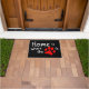 A wordplay with the quote "Home is where the heart is", this black floor mat has the words "Home is where the [paw print picture] is", with the paw print picture in red, representing the "heart". The perfect gift for pet lovers.