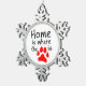 A wordplay with the quote "Home is where the heart is", this snowflake pewter ornament has the words "Home is where the [paw print picture] is", with the paw print picture in red, representing the "heart". The perfect gift for pet lovers.