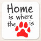 A wordplay with the quote "Home is where the heart is", this paper coaster has the words "Home is where the [paw print picture] is", with the paw print picture in red, representing the "heart". The perfect gift for pet lovers.