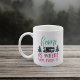 Cute mug for RV owners and camping aficionados features the saying "home is where you park it" in colorful lettering with an RV camper parked between two pine trees. A perfect gift for camping lover or RVing enthusiast, mug features a fun camping quote in rustic hand lettered typography.