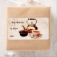 Home made delicious jam canning label featuring a copper tea+pot, a cup of tea and a glass dish with jam