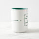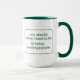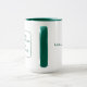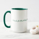White, 15-ounce, mug with dark green handle and interior. Matching dark green text says, "I am exactly where I want to be. At home, avoiding people." A decorative scribble runs around the back of the mug to complete the design. Created with left-handed people in mind.