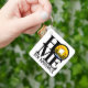 The key chain is made of metal and really sturdy. The flower design is really cheerful. The logo and colors are clear and crisp!