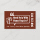 A dark brown cover features a bubble speech design with a home tools icon. Inside the frame is the caption "Need Help With Home Repairs?". Near the base is an additional slogan caption for your contact details. ; You can change both caption remarks to suit your own service needs. Your phone contact is held vertically on the right side of the card.