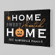 Welcome your guests with this spooky fun personalized Halloween canvas wall art. The stylish typography design features "Home Sweet Haunted Home" wording with custom text for your family name and accents of a scary jack-o-lantern pumpkin, creepy dangling spider, and spider web background. Includes a black, gray, white, and orange color scheme.