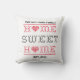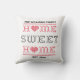 Accent your home with a trendy throw pillow. Sweet and stylish, the pillow features red and black cross stitch letters spelling out the text "Home Sweet Home" with a border of red cross stitch rows at the bottom and top. Personalize this custom design with your own text and details in matching black lettering.