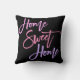 Home Sweet Home Elegant Pink Lilac Script Black Throw Pillow
