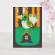 Beautiful illustration of a bird standing on his top of his house on a hill. He's home sweet home and King of the hills! This card can be used for multiple purposes: new home, Halloween, just because and more uses.