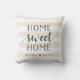 Simply charming in a rustic modern style, our striped throw pillow makes a sweet housewarming gift. Design features light tan beige and white horizontal stripes with "home sweet home" in brushed black script and block typography. Personalize with your family name and year established beneath in matching lettering.