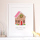 Hand illustrated gingerbread house design by Shelby Allison that can be personalized with your family name.