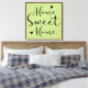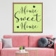 "Home Sweet Home" sentiment in modern script on light green and white Scandinavian style leaves pattern with brown border