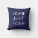 Modern typography decorative throw pillow. Design features "Home sweet Home" modern white typography on a dark navy blue background. Double sided design.