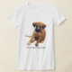 My overall review is that the T-shirt is nice, it fits true to size however the font is significantly smaller than advertised and you can't read it. The printing is unreadable and there is a strain to read it. It does not look like the advertised product. Maybe the shirt color is darker or a larger more visible font should have been used. Photos with and without flash and font is barely legible.