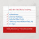 A flyer template for a home tutor with a handwritten text on lined writing paper with a hand holding a red marker pen and red ticks beside the school subjects offered for tutoring.