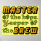 This "Les Miserables" inspired design for beer brewers says, "Master of the hops. Keeper of the brew." The words "master" and brew" are done in beer colors with bubbles. The rest is green, with the "o"s replaced by hops and part of the "K" replaced by a key. A great poster for a homebrewer or a brewmaster to hang on the wall at your brewery.