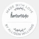 Rustic, modern and simple homemade baked goods, apple pie, cookies or jam canning sticker with the text homemade, made with love and your name in offblack stylish typography and script on a white background. Simply add your name to the label. Exclusively designed for you by Happy Dolphin Studio. If you need any help or matching products, please contact us at happydolphinstudio@outlook.com.