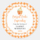 This fun and whimsical sticker features a carrot cake cupcake on a white lace doily and orange gingham background. It is perfect for labelling your homemade goods. The text combines handwritten script and serif fonts for a stylish and modern look.