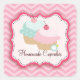 Two cupcakes, one teal and the other pink, both with a cute pink cherry on the top. Perfect for cupcake and baking lovers. Pink chevron pattern on the background, featuring a pink label written as model "handmade cupcakes", which can be easily customized with message, name or any other text of your choice.