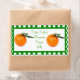 This pretty label is perfect to use on your personalized homemade canned or jar goods. The label is outlined in a green and white checked border. The center is white with an orange on the right and left sides. All text is customizable.