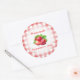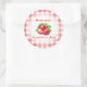 Traditional English style Strawberry Jam label with red check and strawberries.