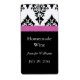 A pretty label to put on your special bottle of homemade wine or to use for any special occasion. It features a white and black damask top and a black bottom. A pretty pink ribbon sits on the top of the label. Your customizable wine information goes in the center. Great for homemade wines or gift wines!
