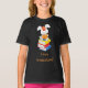 This black t-shirt features a white bunny rabbit reading a book. He is wearing a red and yellow striped baseball cap, reading a book and sitting on top of 3 books. "I love Homeschool" is written under the design using fun orange font. Purchase for a homeschooler today!