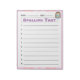 A notepad with a pink frame designed for elementary homeschool student spelling tests . Also available in earth tones and in blue .