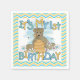 Honey Bear 1st Birthday paper napkins, a cute and fun design that features a brown teddy bear with a bee hive, bumble bees, flowers, text that reads It's My 1st Birthday, and a border of blue, teal, gold, and white chevron stripes. We have the matching Honey Bear 1st Birthday paper plates!