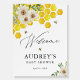 This welcome sign features a script heading and your custom text surrounded by a watercolor design of honey bees and daisies. Use the template form to add your personalization.