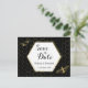 Congratulations on your engagement! Now it's time to share your fantastic news with your nearest and dearest with this cute honey bee themed Black and gold hexagon pattern custom save the date! Customise with your details and you're good to go! This card is part of a curated and coordinated wedding collection called "Oh Honey Noir Wedding" in the Celebrations Studio store where there is a range of matching wedding stationery, decor and mailing products.